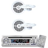 Pyle Marine Radio Receiver and Speaker Package - PLCD3MR AM/FM-MPX IN -Dash Marine CD/MP3 Player/USB & SD Card Function - 2x PLMR57W 2 Pairs of 5 1/4'' Dual Cone Waterproof Stereo Speaker System